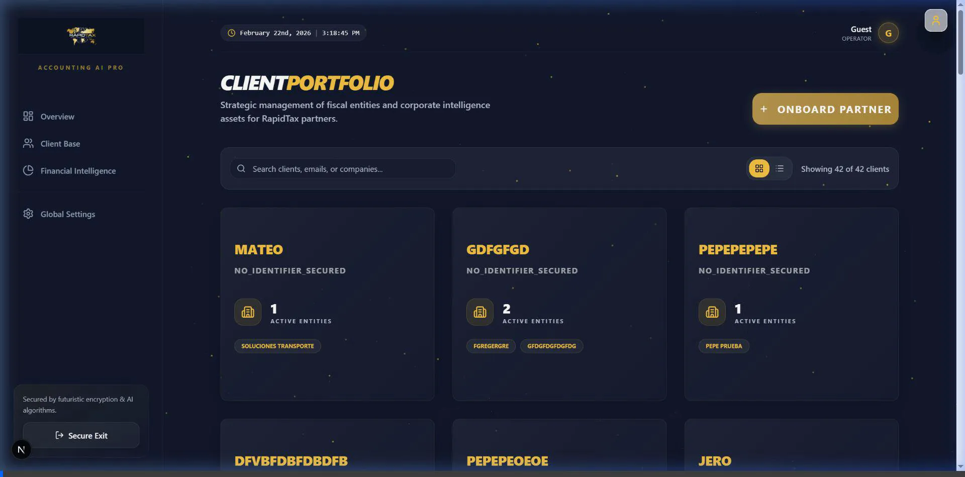 Diseñado para despachos de contadores (CPA). Gestionar múltiples clientes y corporaciones ahora es visualmente cristalino.